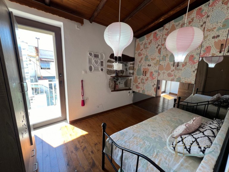 Het huis strekt zich uit over twee verdiepingen en combineert op harmonieuze wijze traditionele elementen met modern comfort. Op de begane grond bevindt zich een gezellige woonkamer met open haard, een volledig uitgeruste keuken en een nette badkamer. Via een elegante houten trap bereikt u de bovenverdieping, waar twee comfortabele slaapkamers zijn gesitueerd. Deze delen een sfeervol balkon met uitzicht op de beschutte binnenplaats – een heerlijke plek voor een ochtendkoffie of een goed glas wijn bij zonsondergang.