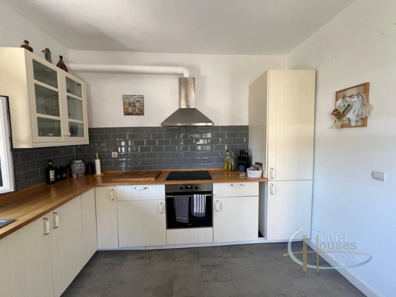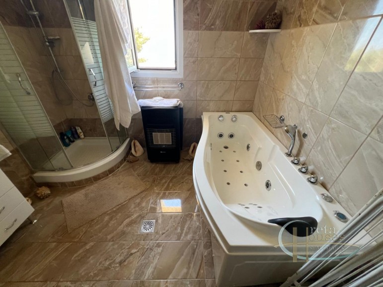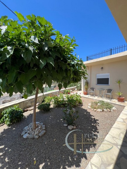 Dit prachtige huis heeft in 2019 een volledige renovatie ondergaan, waarbij zowel de elektrische als sanitaire systemen zijn geüpgraded, en er zijn nieuwe PVC-deuren en -ramen geplaatst. Het interieur is compleet vernieuwd, waardoor het pand van 119 m² op een perceel van 317 m² is getransformeerd in een moderne oase. Het huis beschikt over een prachtig ingerichte keuken, een open woonkamer die leidt naar een charmante zithoek en tuin, een ruime slaapkamer en een royale badkamer. Daarnaast is er een aparte gastenslaapkamer met een en-suite badkamer. Twee airconditioningunits en een kachel zorgen voor efficiënte verwarming en koeling door het hele huis. Buiten biedt de tuin een heerlijke zithoek met gedeeltelijk uitzicht op de zee en de bergen/bos. Een externe trap leidt naar het dak en biedt een adembenemend 360 graden uitzicht op de zee, de bergen en het dorp.
