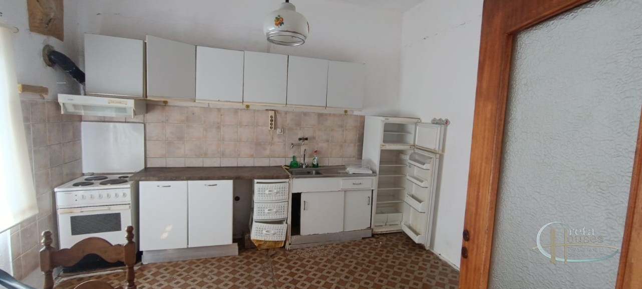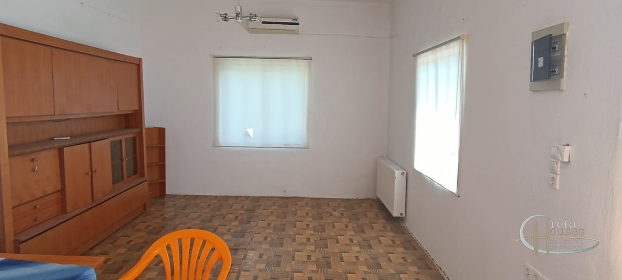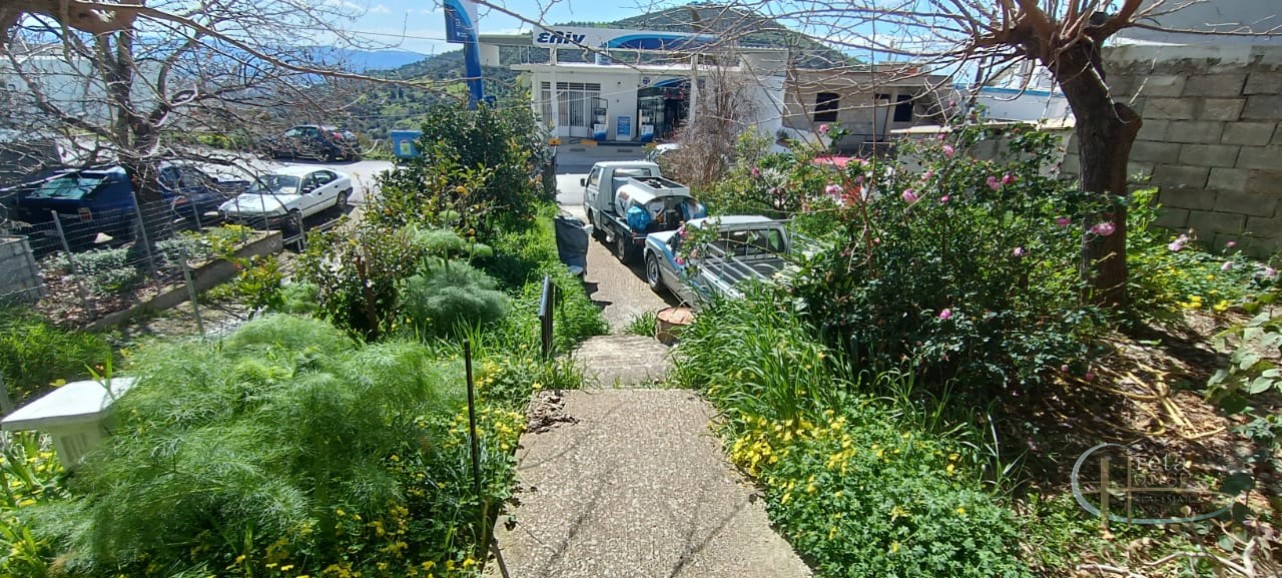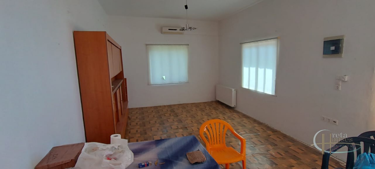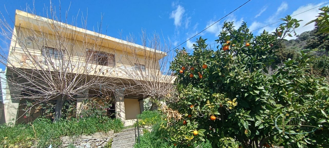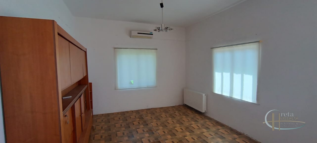 Het huis ligt in het centrum van het dorp Platanos Amariou en is verdeeld over twee verdiepingen. Op de begane grond bevinden zich twee grote kamers die momenteel in gebruik zijn als opslagruimte en een totale grootte hebben van 80 m² en een grote binnenplaats, met tuin en prachtige groene bomen. Het hoofdhuis van 104 m² bevindt zich op de eerste verdieping en bestaat uit een keuken, een grote woonkamer, 2 slaapkamers, 1 badkamer en een kleine berging. Alle kamers zijn voorzien van airconditioning voor koeling en radiatoren voor verwarming. Een balkon aan de voorzijde biedt uitzicht op het dorp en de zuidkust.