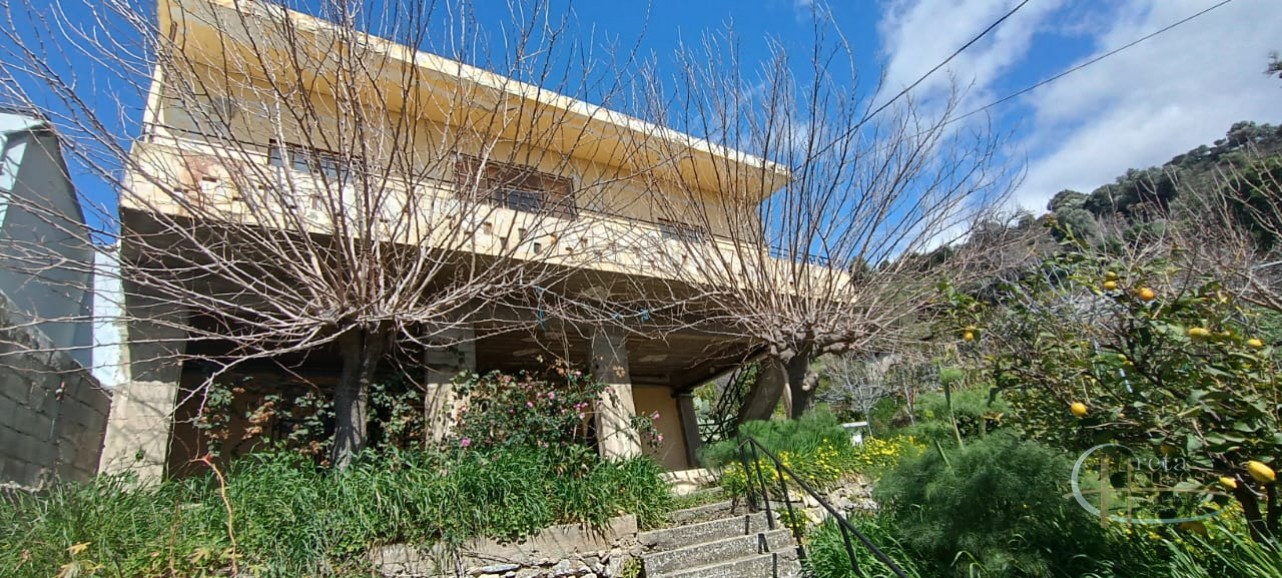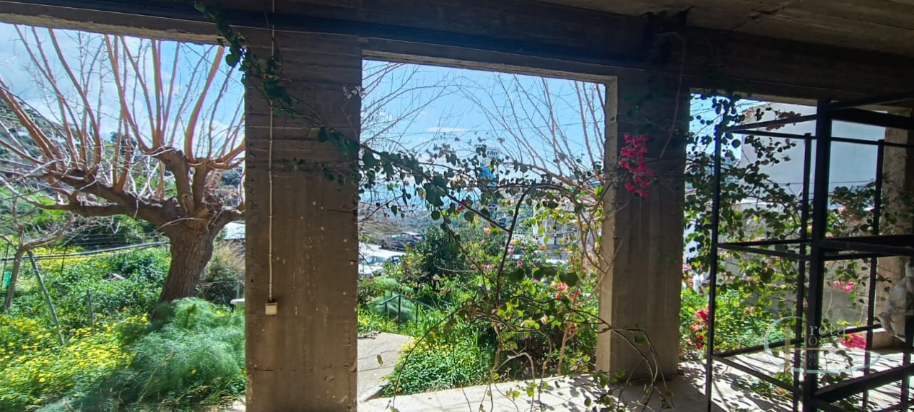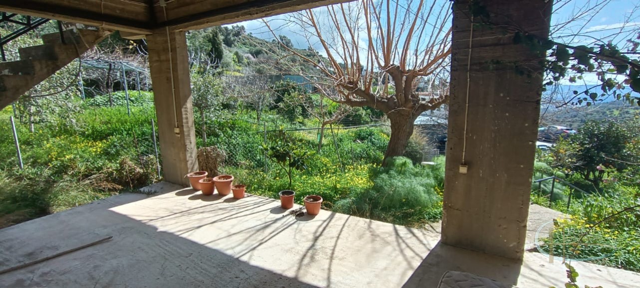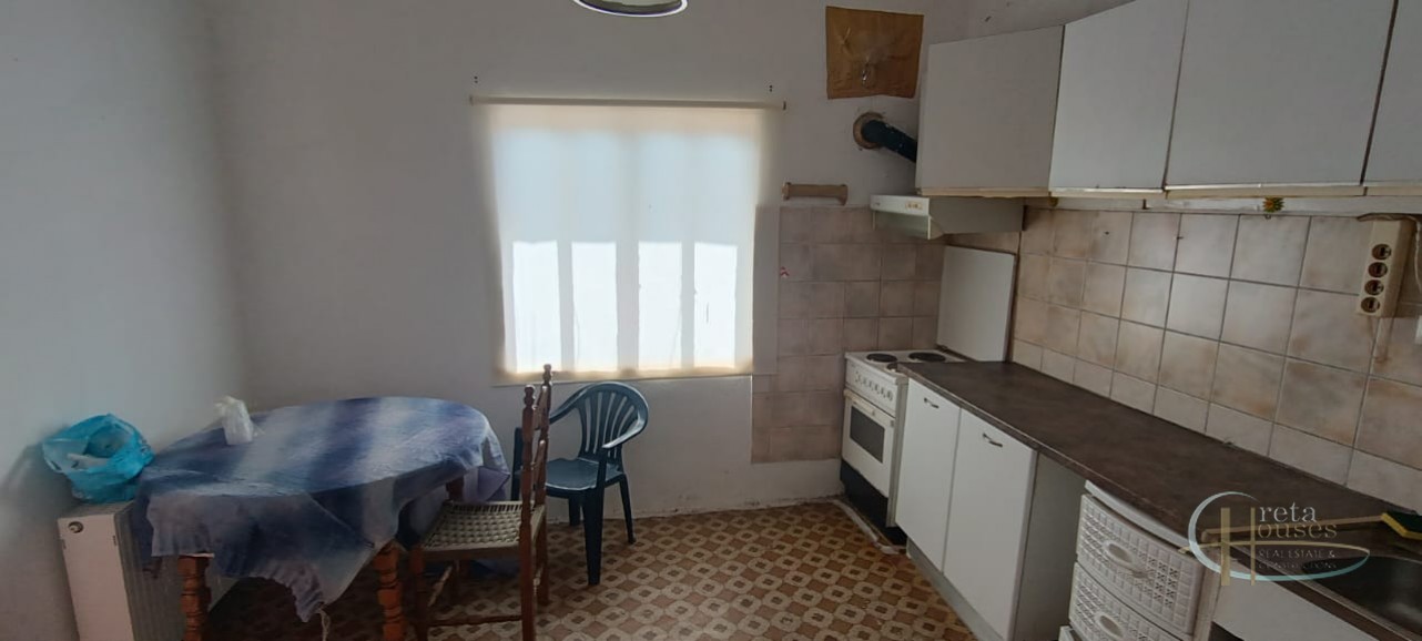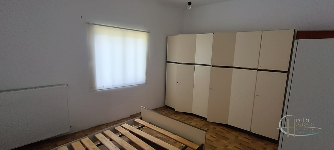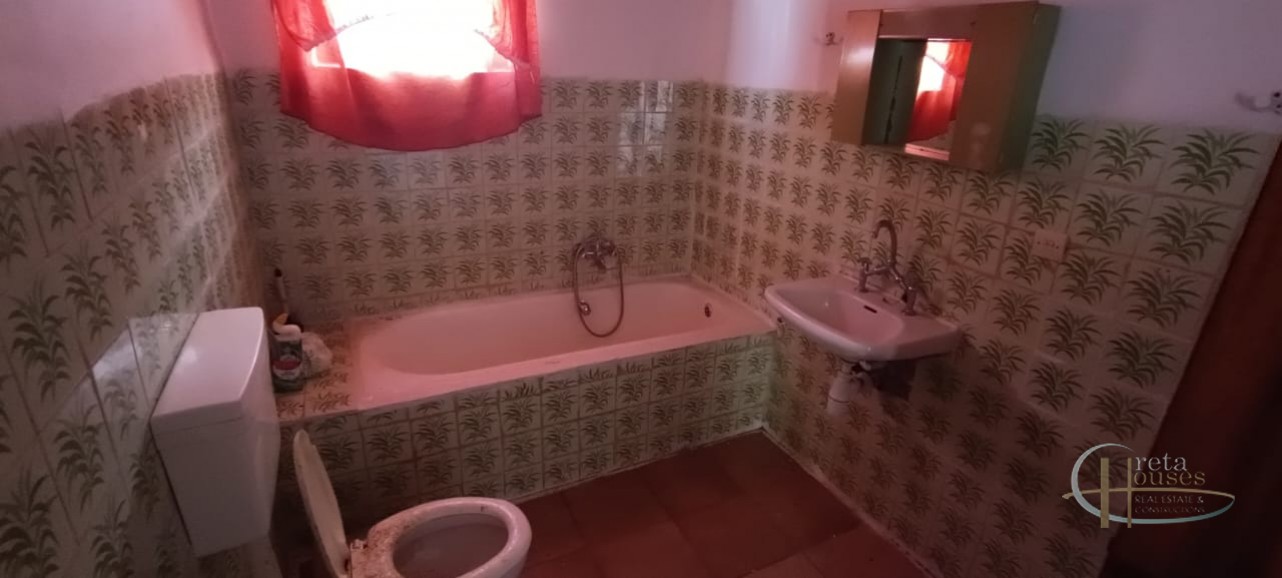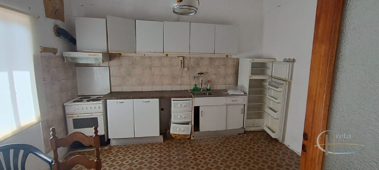 Het huis ligt in het centrum van het dorp Platanos Amariou en is verdeeld over twee verdiepingen. Op de begane grond bevinden zich twee grote kamers die momenteel in gebruik zijn als opslagruimte en een totale grootte hebben van 80 m² en een grote binnenplaats, met tuin en prachtige groene bomen. Het hoofdhuis van 104 m² bevindt zich op de eerste verdieping en bestaat uit een keuken, een grote woonkamer, 2 slaapkamers, 1 badkamer en een kleine berging. Alle kamers zijn voorzien van airconditioning voor koeling en radiatoren voor verwarming. Een balkon aan de voorzijde biedt uitzicht op het dorp en de zuidkust.