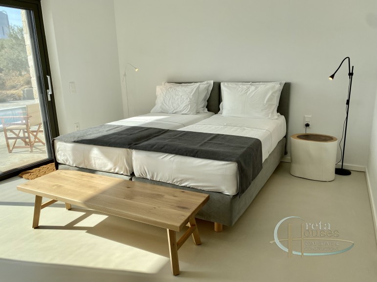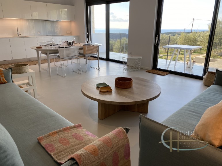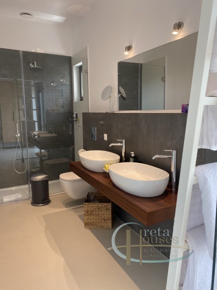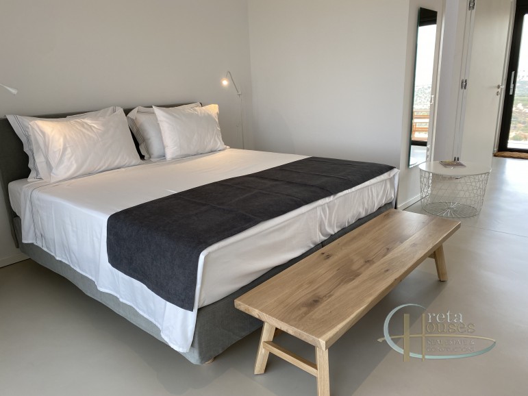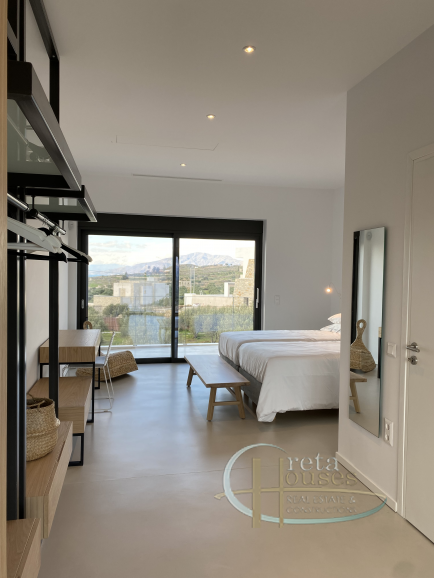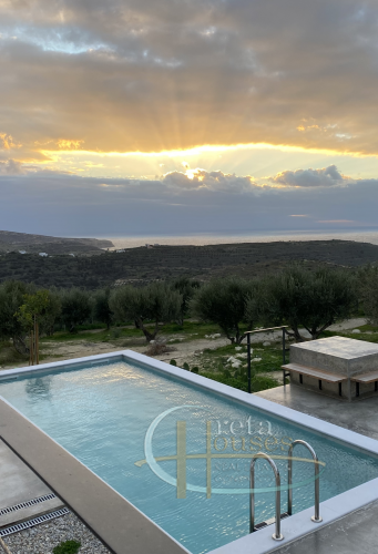 Deze villa met een totale oppervlakte van 157 m2 is gebouwd op een olijfgaard van 2000 m2 en biedt een verbluffend uitzicht op de zee, de prachtige Kretenzische natuur en de prachtige zonsondergang van Kreta. Het is een moderne constructie gebouwd in 2021 met fotovoltaïsche panelen, automatische 24-uurs ventilatie, warmtepomp, vloerverwarming en ventilatorconvectoren voor koeling. Het bestaat uit een Italiaanse open keuken van hoge kwaliteit – met Miele-apparatuur, waaronder de wasmachine – een woonkamer en suites met twee slaapkamers (elk meer dan 30 m2) met eigen badkamers. In de buitenruimte bevindt zich het zwembad met een ruim zwembad van 22 m2. Aan de achterkant van het huis leidt een buitentrap naar het dakterras waar het 360° uitzicht over de zee, de Messara-vlaktes en de bergen Psiloritis en Asterousia adembenemend is. Deze villa is volledig ingericht zoals te zien op de foto’s en volledig uitgerust met beddengoed en handdoeken, keuken- en eetgerei, borden, glazen, bestek etc. Deze villa is voorzien van een EOT-licentie en is daarom een investeringsmogelijkheid. Extra informatie Kenmerken: Veiligheidsdeur, Beveiligingsalarm, Berging, Dubbele beglazing, Balkons, Gemeubileerd, Luxe, Vloerverwarming, Ventilatorconvectoren, Olijfgaard, Tuin, Zwembad, Autonoom – Warmtepomp, Uitzicht: Uitzicht op zee, Uitzicht op de bergen, Energiecertificaat: A+